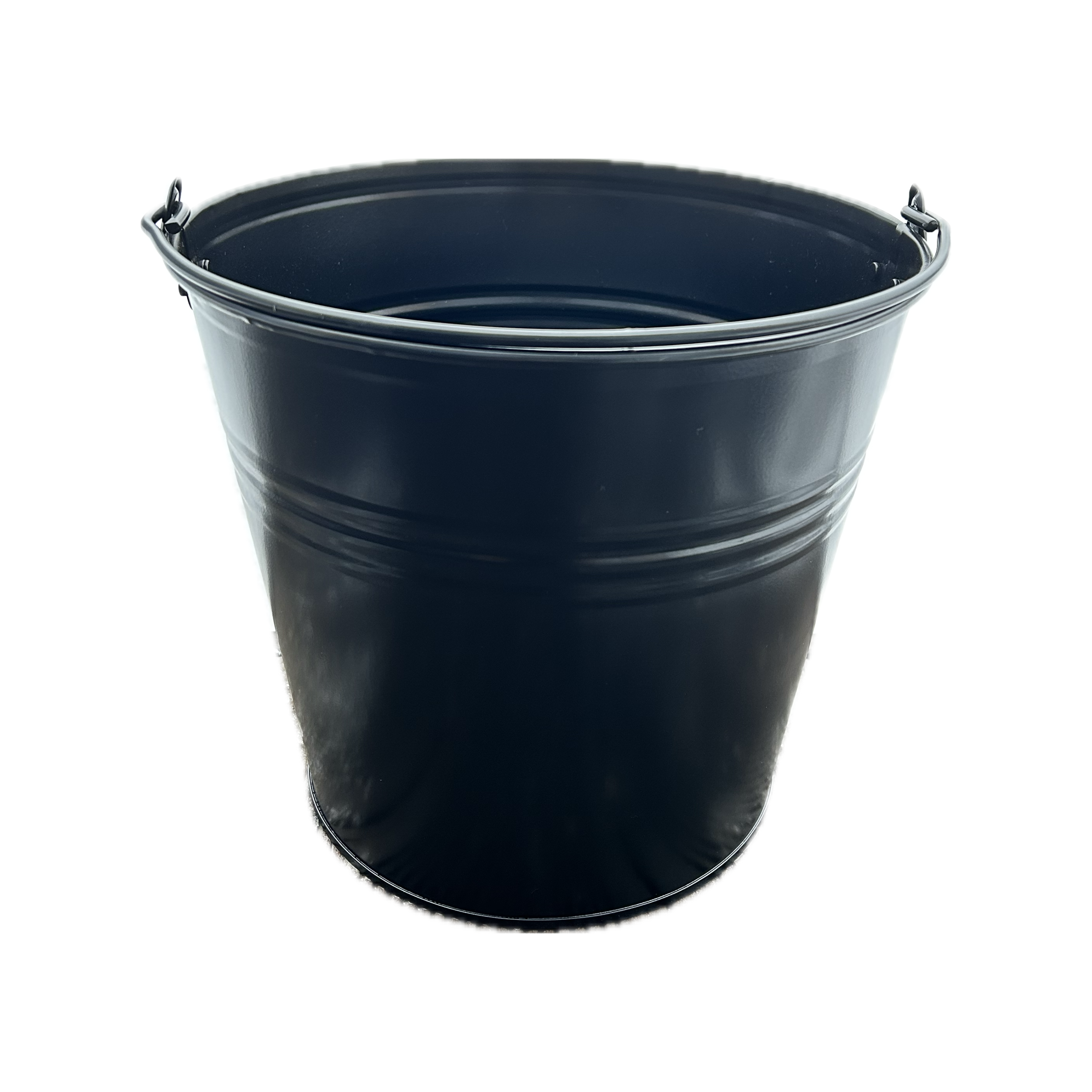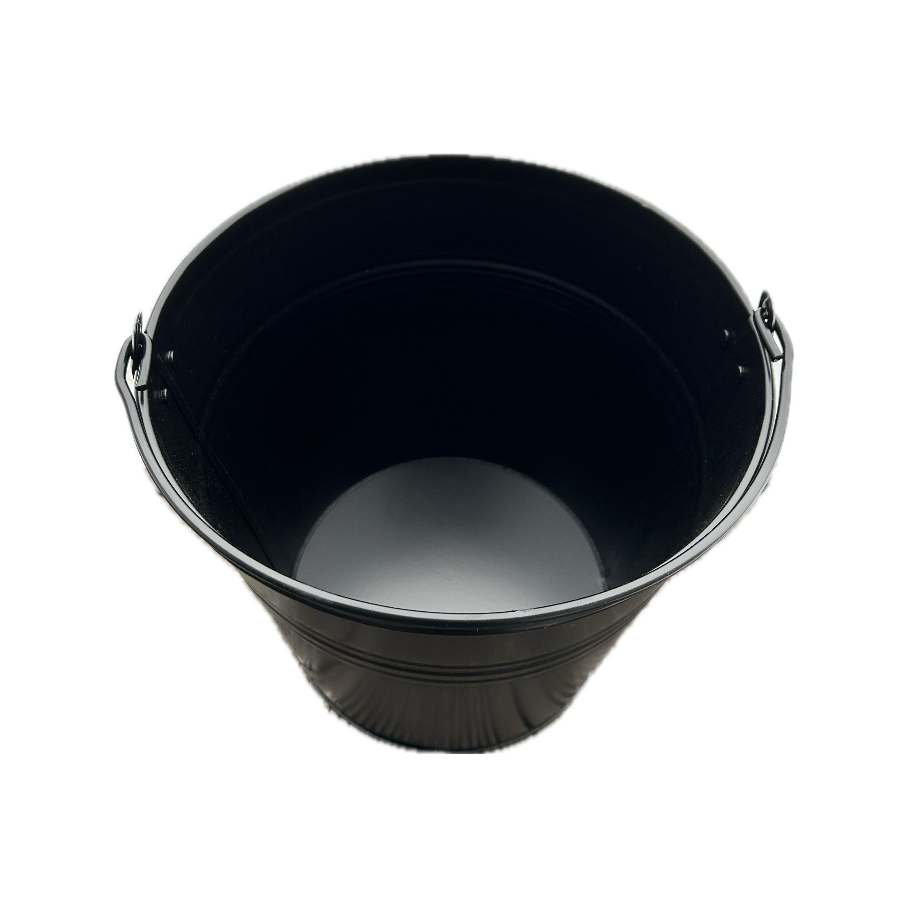 Wysokiej jakości wiadro z uchwytem stalowe, malowane proszkowo na kolor czarny, idealnie sprawdzi się jako pojemnik na popiół z kominka, a także jako śmietnik na inne nieczystości. Wiadro jest ocynkowane, z grubej stali, z ozdobnym tłoczeniem na środku.