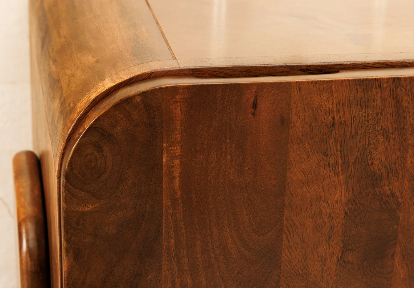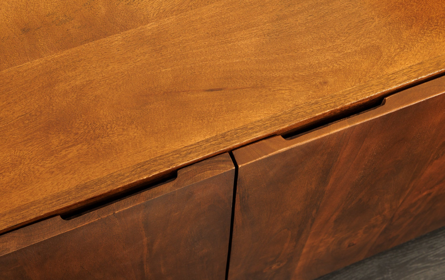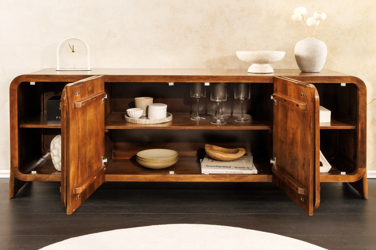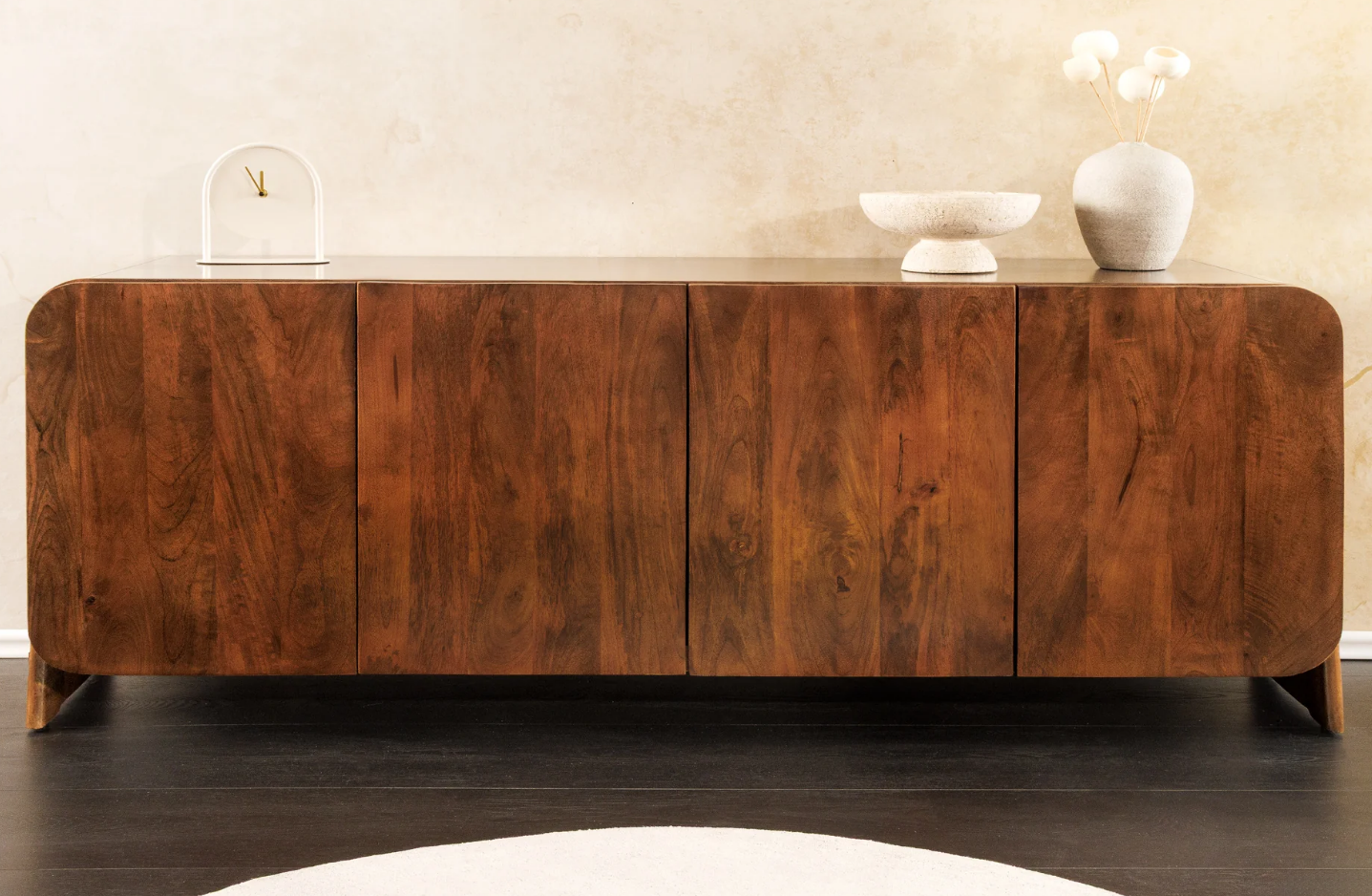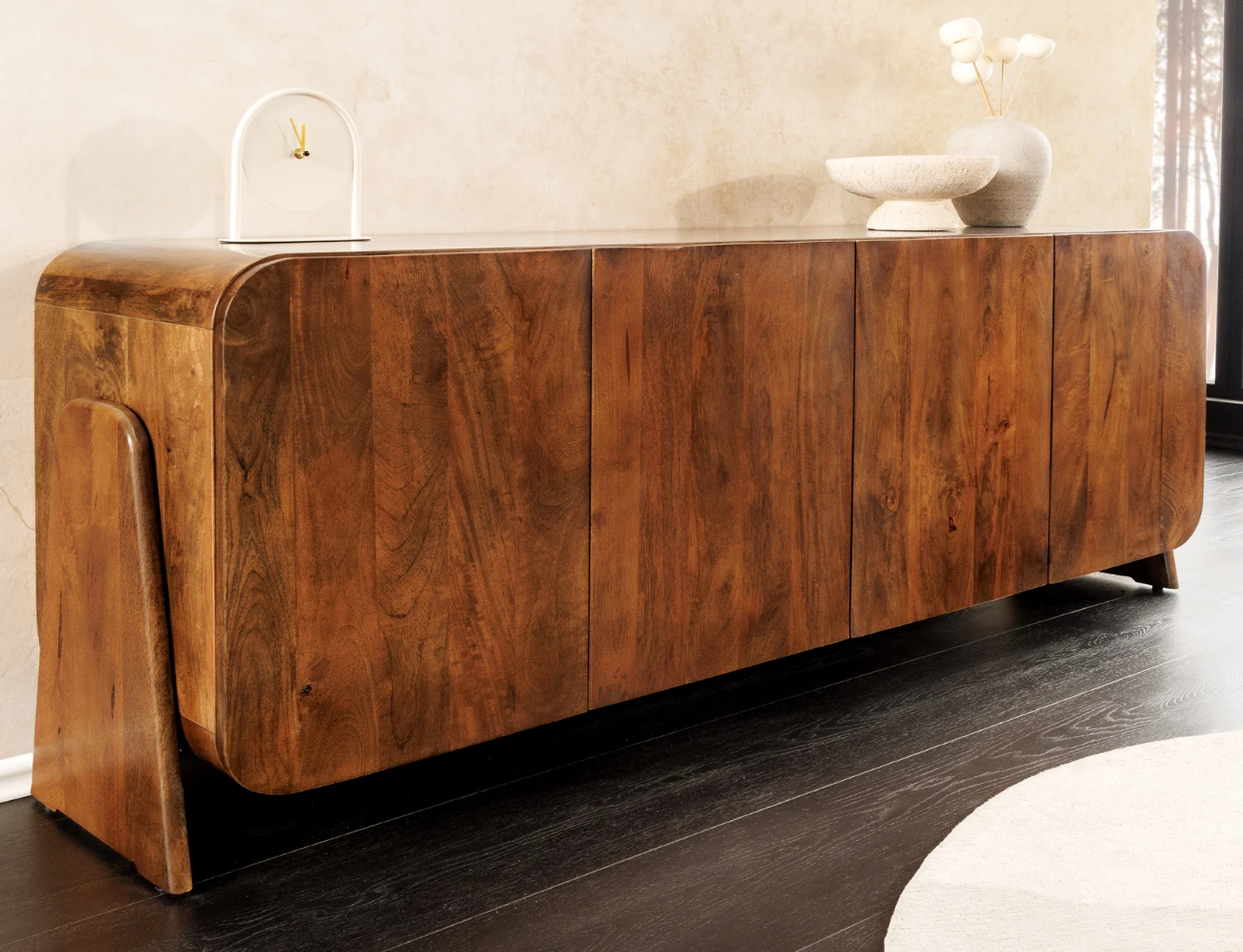 Naturalny urok i nowoczesna prostota spotykają się w kredensie Brasil. Całkowicie wykonany z drewna mango, przyciąga uwagę ciepłym kolorem i subtelnym wykończeniem. Delikatnie zaokrąglone rogi oraz gładkie fronty tworzą harmonijną bryłę, która wprowadza do wnętrza spokój i elegancję. Ukryte za frontami półki oferują wiele miejsca na przechowywanie — od książek po zastawę stołową. Brasil to mebel, który doda wnętrzu naturalnego ciepła i stanie się ponadczasowym akcentem w każdej aranżacji.