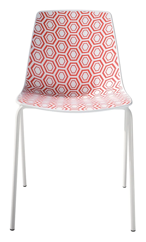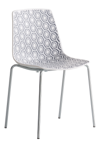 Alhambra to krzesło, które łączy nowoczesny design z subtelną grą formy i faktury. Siedzisko z tworzywa o wyjątkowej, geometrycznej teksturze sześciokątów przyciąga wzrok i nadaje wnętrzom unikalny charakter. Paleta barw pozwala na tworzenie zarówno spójnych, stonowanych aranżacji, jak i odważnych, kolorowych kompozycji. Smukła podstawa stalowa występuje w trzech kolorach, a w wersji malowanej jest przystosowana do użytku zewnętrznego, zachowując elegancję nawet w wymagających warunkach. Możliwość sztaplowania czyni z Alhambry wybór równie praktyczny, co estetyczny — idealny do kuchni, jadalni, tarasu czy ogródka restauracyjnego.