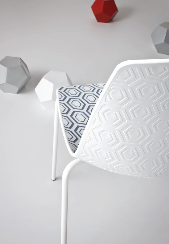 - Wyjątkowy design – geometryczna faktura siedziska w formie sześciokątów dodaje wnętrzom oryginalności i nowoczesnego charakteru.