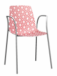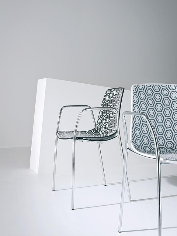 Alhambra to krzesło, które łączy nowoczesny design z subtelną grą formy i faktury. Siedzisko z tworzywa o wyjątkowej, geometrycznej teksturze sześciokątów przyciąga wzrok i nadaje wnętrzom unikalny charakter. Paleta barw pozwala na tworzenie zarówno spójnych, stonowanych aranżacji, jak i odważnych, kolorowych kompozycji. Smukła podstawa stalowa występuje w trzech kolorach, a w wersji malowanej jest przystosowana do użytku zewnętrznego, zachowując elegancję nawet w wymagających warunkach. Możliwość sztaplowania czyni z Alhambry wybór równie praktyczny, co estetyczny — idealny do kuchni, jadalni, tarasu czy ogródka restauracyjnego.