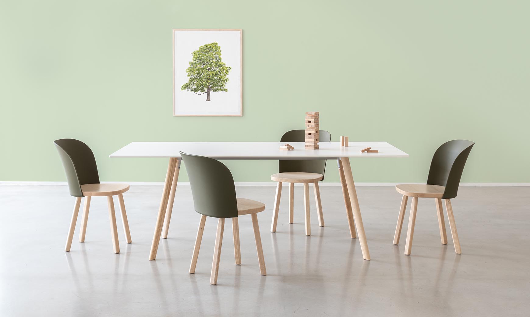 - Trzy warianty oparcia z polipropylenu: beżowe, oliwkowe lub czarne