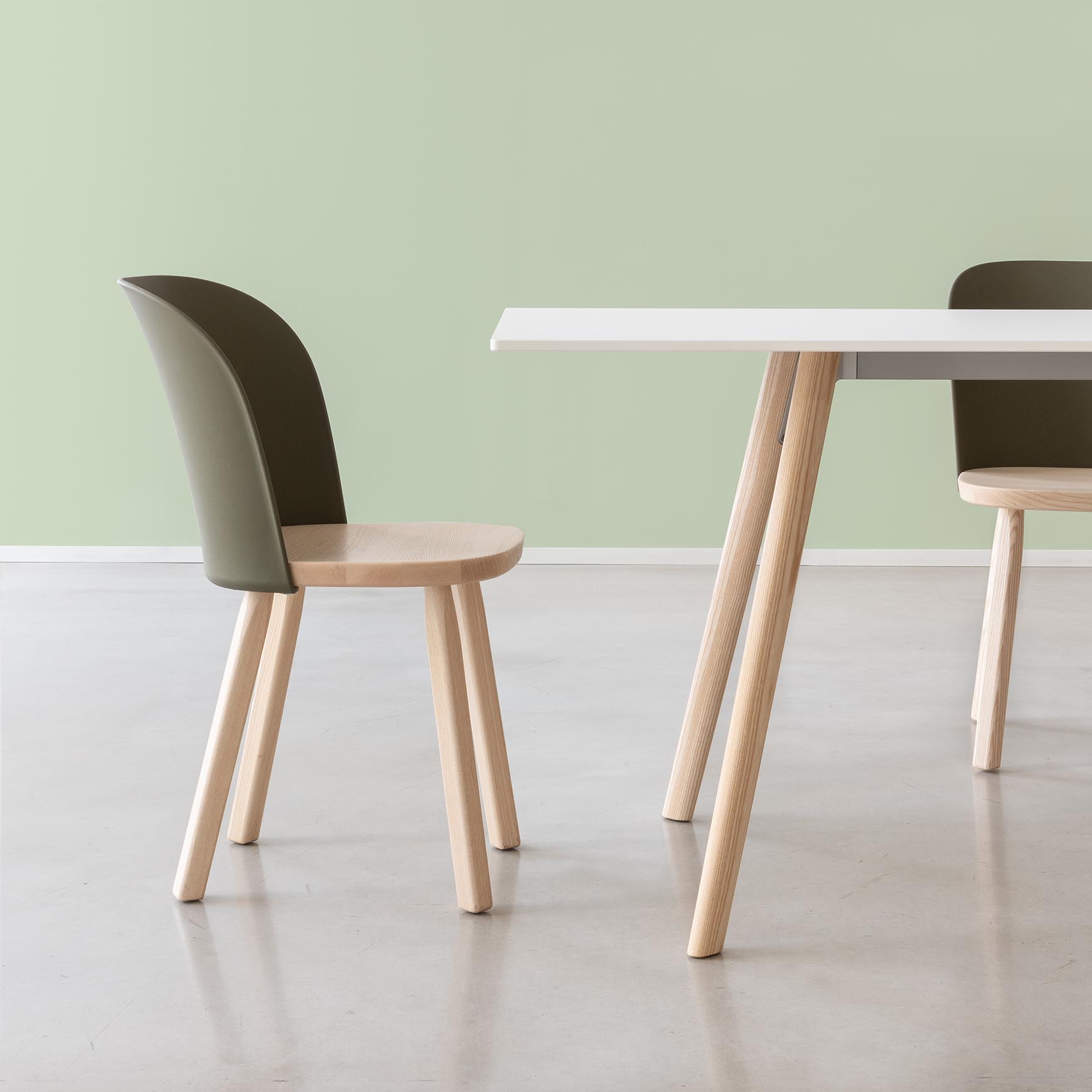 - Trzy warianty oparcia z polipropylenu: beżowe, oliwkowe lub czarne