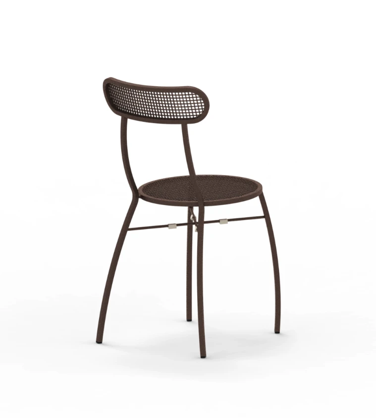 Ciao od Vermobil to krzesło, które natychmiast wprowadza do przestrzeni odrobinę śródziemnomorskiego klimatu. Jego metalowa, ażurowa forma jest jednocześnie lekka wizualnie i wyjątkowo nowoczesna, a delikatnie profilowane nogi dodają mu subtelnej elegancji. Wykonane ze stali o wysokiej odporności, świetnie sprawdza się w warunkach zewnętrznych — nie straszny mu deszcz, słońce ani wilgoć, dzięki czemu możesz cieszyć się nim przez wiele sezonów bez obaw o trwałość.