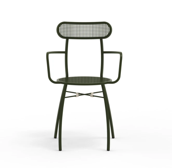 Ciao od Vermobil to krzesło, które natychmiast wprowadza do przestrzeni odrobinę śródziemnomorskiego klimatu. Jego metalowa, ażurowa forma jest jednocześnie lekka wizualnie i wyjątkowo nowoczesna, a delikatnie profilowane nogi dodają mu subtelnej elegancji. Wykonane ze stali o wysokiej odporności, świetnie sprawdza się w warunkach zewnętrznych — nie straszny mu deszcz, słońce ani wilgoć, dzięki czemu możesz cieszyć się nim przez wiele sezonów bez obaw o trwałość.