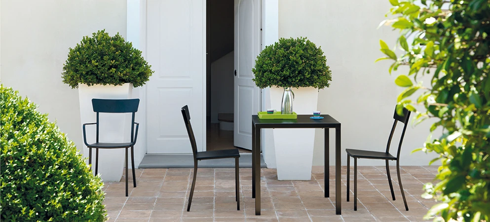 Wyjątkowe w swojej prostocie krzesło Mogan zostało zaprojektowane tak, aby sprostać wymaganiom użytkowania na zewnątrz przez wiele sezonów. Całkowicie wykonane ze stali galwanizowanej, jest odporne na działanie niekorzystnych warunków atmosferycznych, takich jak wilgoć, promieniowanie UV czy rozwój pleśni. Dostępne w dwóch wersjach – z podłokietnikami lub bez – pozwala dopasować się do potrzeb ogrodowych, tarasowych i komercyjnych przestrzeni gastronomicznych. Jego możliwość sztaplowania sprawia, że przechowywanie staje się szybkie i wygodne. Bogata paleta kolorów podkreśla jego nowoczesny charakter, oferując efektowną, a zarazem praktyczną propozycję do aranżacji zewnętrznych.