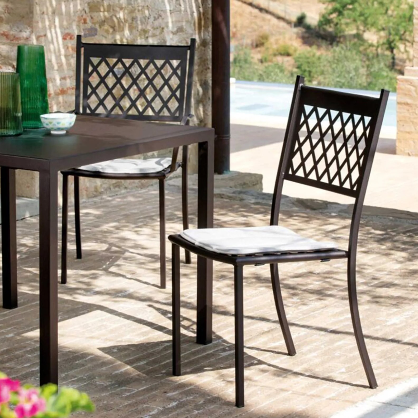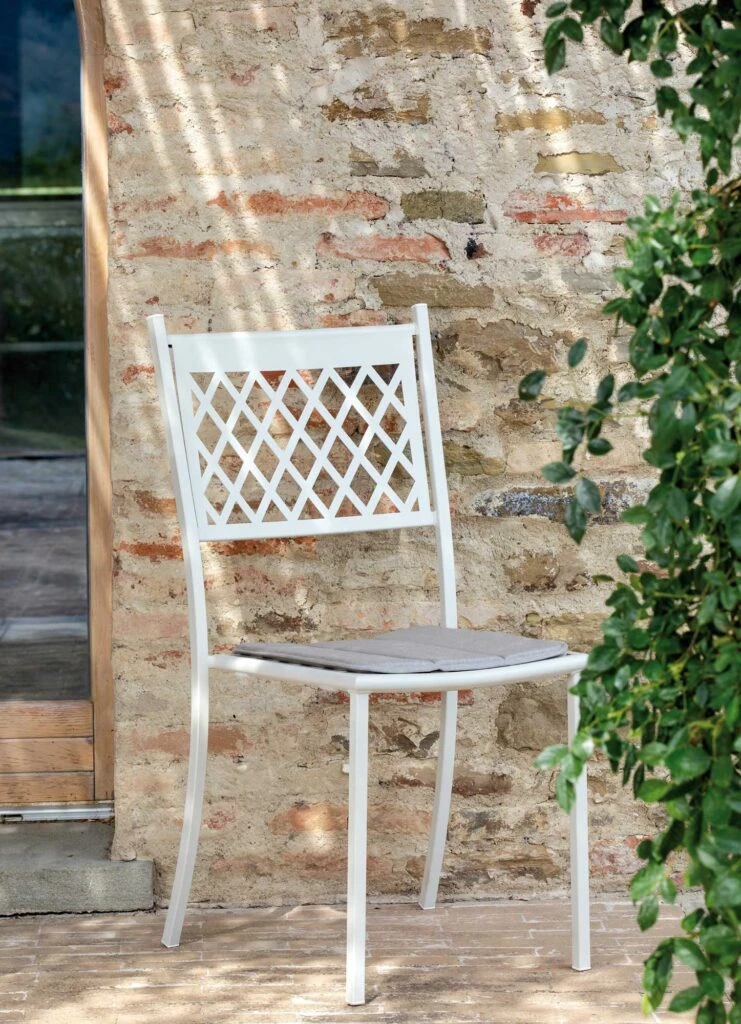 Model Summertime to metalowe krzesło o charakterystycznym, ażurowym wzorze siedziska i oparcia, inspirowane lekkim, tradycyjnym wzornictwem outdoorowym. Jego solidna, stalowa konstrukcja została przystosowana do eksploatacji na zewnątrz — jest odporna na deszcz, promienie UV oraz zmienne temperatury. Dzięki możliwości sztaplowania krzesło jest wyjątkowo praktyczne, łatwe do przechowywania i szybkie w rozstawianiu. Doskonale wpisuje się zarówno w przydomowe ogrody, jak i w strefy gastronomiczne, zapewniając estetyczne i trwałe wyposażenie na wiele sezonów.