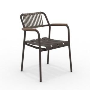 Verdea to uniwersalne krzesło ogrodowe od włoskiego producenta Vermobil, stworzone z myślą o trwałości i estetyce. Solidne aluminium stanowi zarówno mocny, jak i lekki materiał, odporny na deszcz, słońce oraz zmienne temperatury. Prosta, a jednocześnie wyrazista forma zbudowana z szerokich aluminiowych pasów wprowadza do aranżacji nowoczesną lekkość. Model jest w pełni sztaplowany, co czyni go bardzo praktycznym rozwiązaniem w restauracjach, kawiarniach czy ogrodach prywatnych. Dostępność wielu kolorów pozwala na tworzenie spójnych lub kontrastowych zestawów — w zależności od potrzeb projektu.