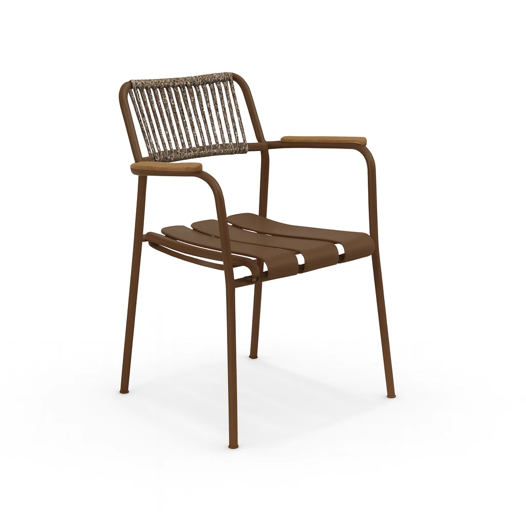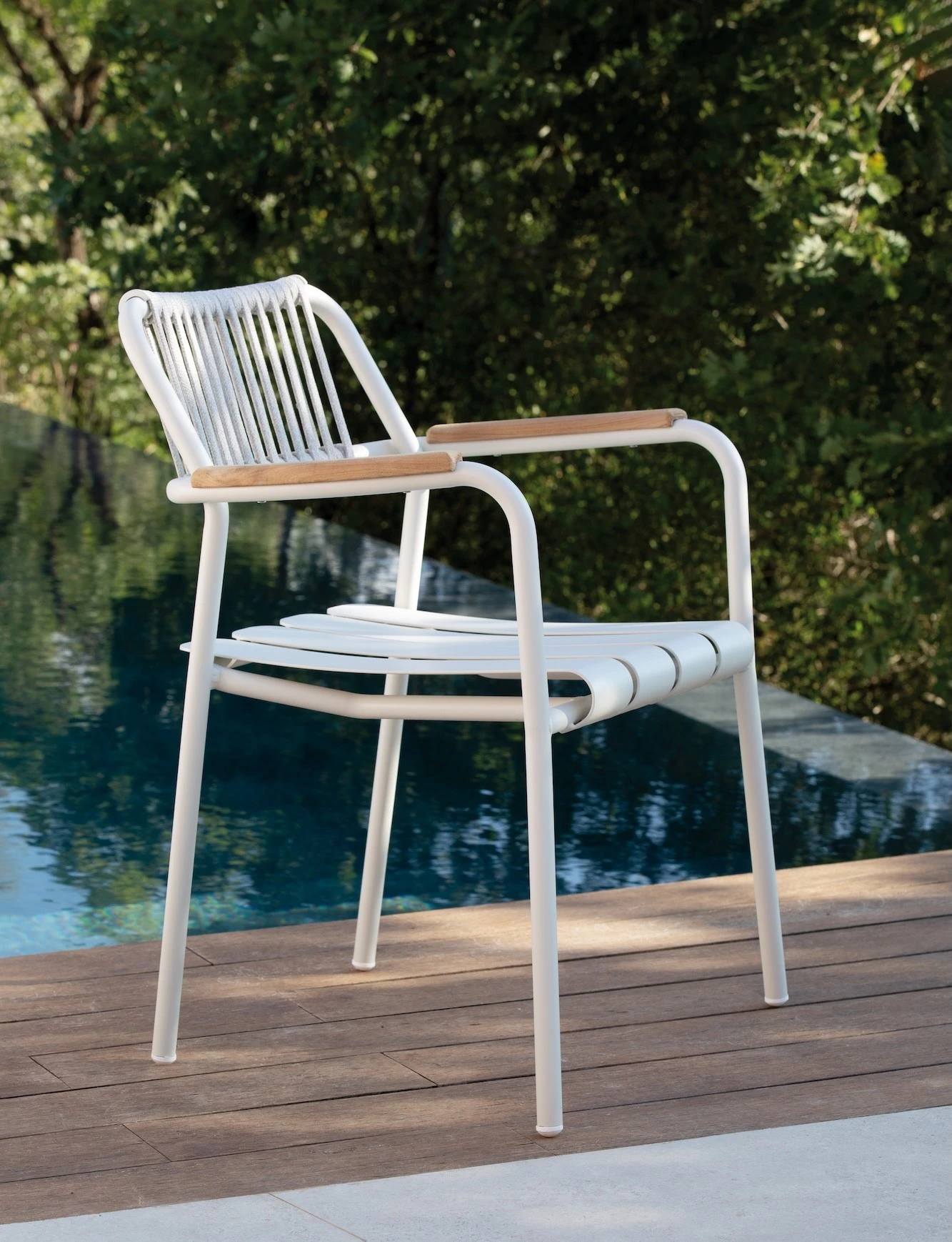 Verdea to uniwersalne krzesło ogrodowe od włoskiego producenta Vermobil, stworzone z myślą o trwałości i estetyce. Solidne aluminium stanowi zarówno mocny, jak i lekki materiał, odporny na deszcz, słońce oraz zmienne temperatury. Prosta, a jednocześnie wyrazista forma zbudowana z szerokich aluminiowych pasów wprowadza do aranżacji nowoczesną lekkość. Model jest w pełni sztaplowany, co czyni go bardzo praktycznym rozwiązaniem w restauracjach, kawiarniach czy ogrodach prywatnych. Dostępność wielu kolorów pozwala na tworzenie spójnych lub kontrastowych zestawów — w zależności od potrzeb projektu.