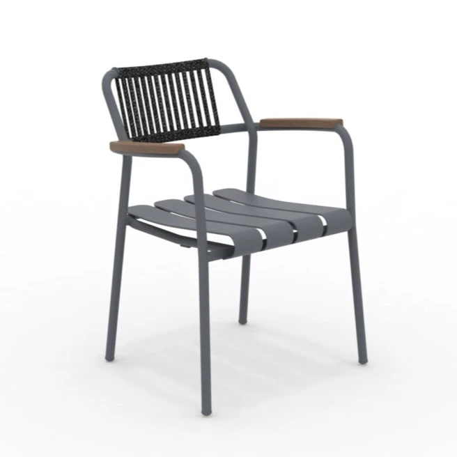 Verdea to uniwersalne krzesło ogrodowe od włoskiego producenta Vermobil, stworzone z myślą o trwałości i estetyce. Solidne aluminium stanowi zarówno mocny, jak i lekki materiał, odporny na deszcz, słońce oraz zmienne temperatury. Prosta, a jednocześnie wyrazista forma zbudowana z szerokich aluminiowych pasów wprowadza do aranżacji nowoczesną lekkość. Model jest w pełni sztaplowany, co czyni go bardzo praktycznym rozwiązaniem w restauracjach, kawiarniach czy ogrodach prywatnych. Dostępność wielu kolorów pozwala na tworzenie spójnych lub kontrastowych zestawów — w zależności od potrzeb projektu.