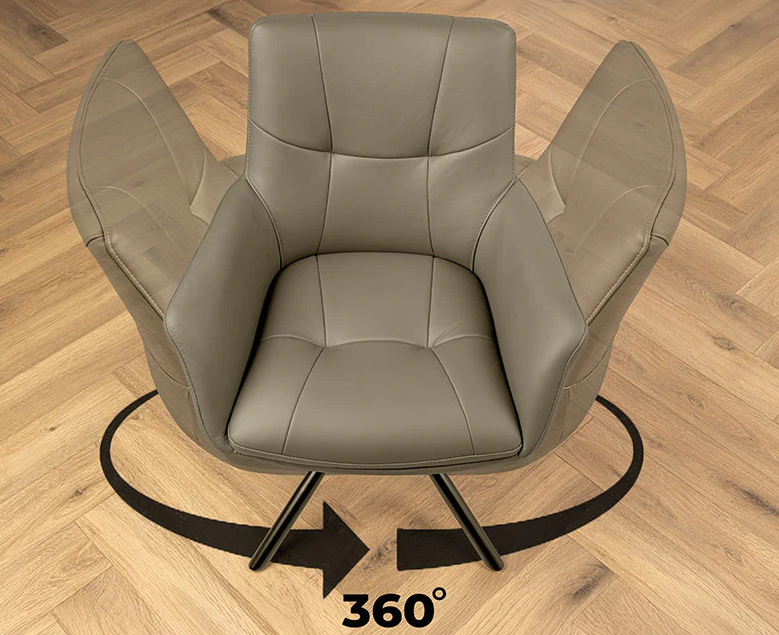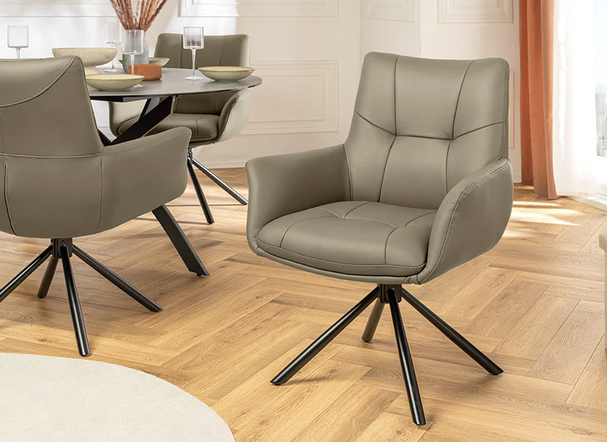 Nowoczesne krzesło Signature zachwyca minimalistyczną formą i wyjątkową wygodą. Pokryte gładką skórą dostępną w różnych kolorach, nadaje wnętrzu klasę i subtelny blask. Dzięki funkcji obrotu 360° krzesło zapewnia komfortowe użytkowanie w każdej sytuacji, a profilowane siedzisko z wysokim oparciem i podłokietnikami gwarantuje pełen relaks.