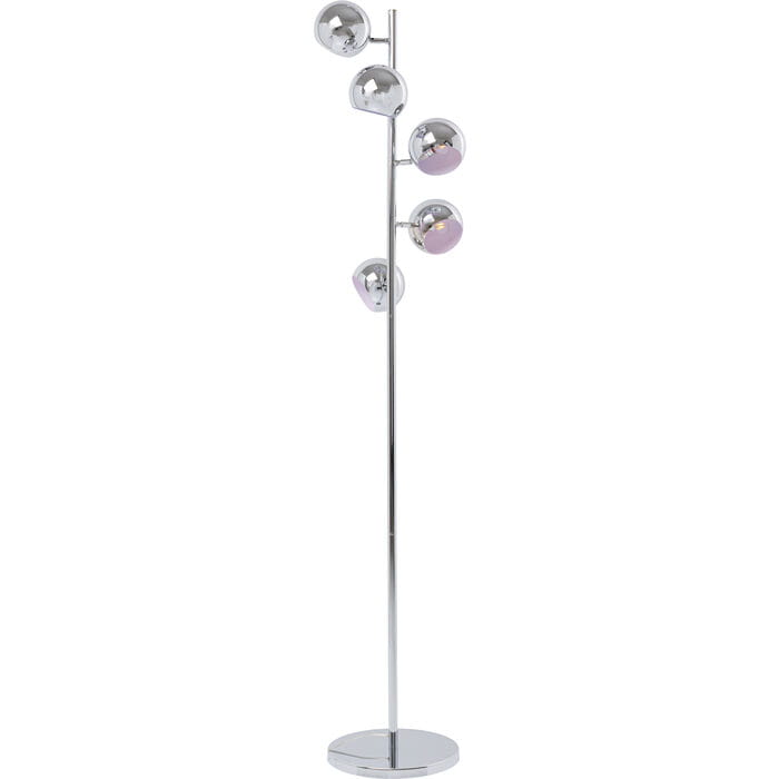 Oryginalna i elegancka lampa, która jest przykładem wzornictwa z lat siedemdziesiątych, ale również harmonijnie dopasuje się do współczesnych stylów wyposażenia - to właśnie lampa podłogowa Calotta Chrome. Model ten pochodzi od renomowanej niemieckiej marki Kare, znanej z najwyższej jakości swoich produktów. Ta czarująca lampa w stylu retro posiada pięć błyszczących kloszy, które możemy dowolnie regulować i dostosować emitowane światło do indywidualnych potrzeb.