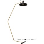 Klosz lampy można obracać i regulować według własnych potrzeb, co pozwala dopasować strumień światła do różnych aktywności. Czarna, metalowa konstrukcja w połączeniu z matowozłotą, elegancką podstawą łagodzi surowość stylu industrialnego, nadając lampie lekkości i dekoracyjnego charakteru.