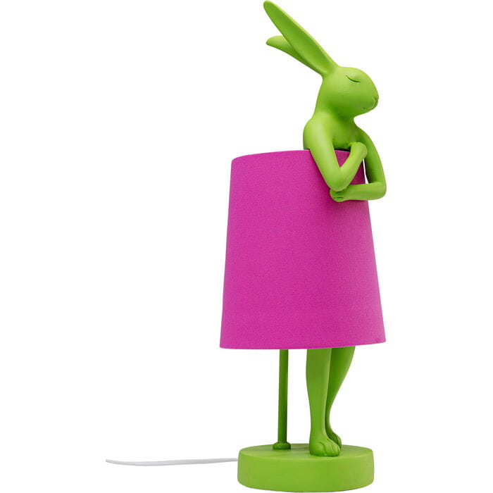Lampa stołowa Animal Rabbit to wyjątkowy element dekoracyjny, który wnosi do wnętrza oryginalny i niekonwencjonalny akcent. Głównym motywem jest figura królika wykonana z trwałej żywicy poliestrowej, lakierowanej proszkowo na intensywny zielony kolor. Królik o gładkiej powierzchni i starannie wykończonych detalach prezentuje minimalistyczny, a jednocześnie niezwykle wyrazisty design. Abażur, wykonany z wysokogatunkowego lnu, pełni funkcję sukienki, którą królik „nosi” z elegancją i wdziękiem. Róż abażura idealnie dopełnia intensywną zieleń figury, tworząc harmonijną i nieoczywistą kombinację kolorów. Abażur nie tylko pełni rolę estetyczną, ale również rozprasza światło, tworząc przyjemną, ciepłą atmosferę. Lampa Animal Rabbit to idealny wybór do salonu, sypialni czy biura, gdzie stanie się nie tylko funkcjonalnym źródłem światła, ale także unikalnym elementem dekoracyjnym.