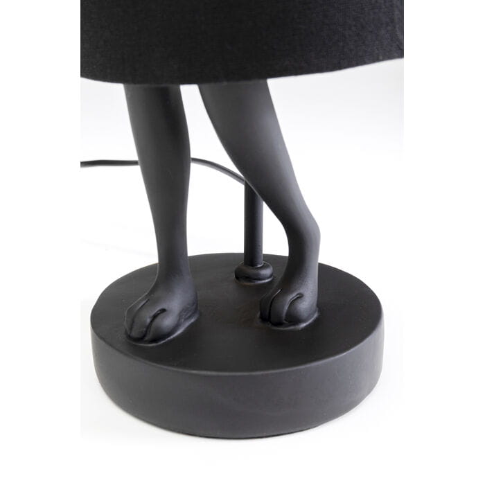 Lampa stołowa Animal Rabbit to nowoczesny, designerski element oświetlenia, który wyróżnia się oryginalnym i zabawnym stylem. Wykonana z trwałej poliestrowej żywicy, przedstawia matowego, czarnego królika, który trzyma na sobie abażur, przypominający elegancką sukienkę. Połączenie nowoczesnej formy i subtelnej stylistyki czyni tę lampę nie tylko funkcjonalnym, ale także dekoracyjnym akcentem, który wprowadzi wyjątkowy charakter do każdego wnętrza. Lniany abażur, utrzymany w minimalistycznym stylu, z wewnętrzną stroną lakierowaną na złoty kolor, nadaje lampie ciepłego, przyjemnego oświetlenia. Lampa Animal Rabbit świetnie sprawdzi się w nowoczesnych wnętrzach, wprowadzając nieco humoru i artystycznego wyrazu.