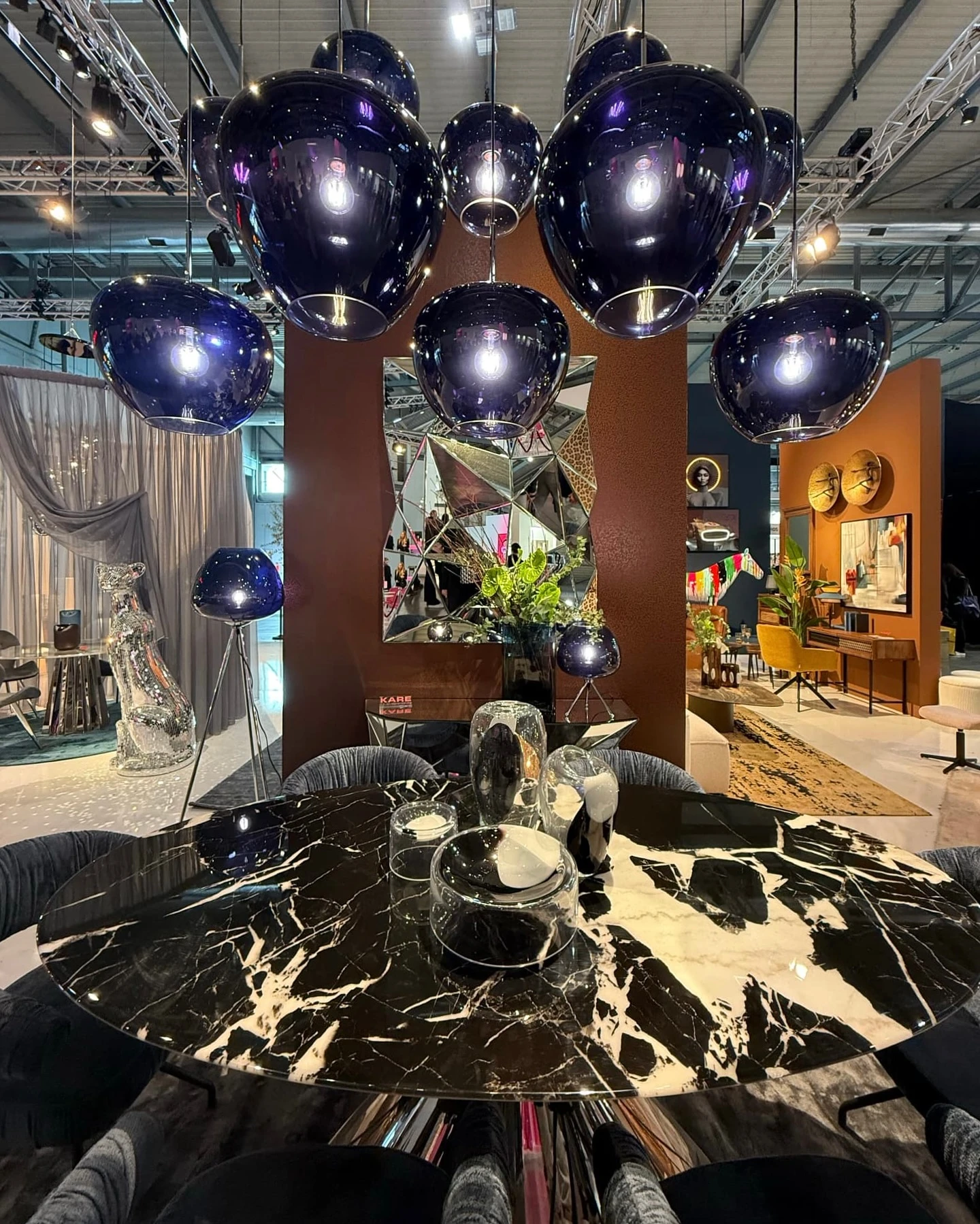Lampy Sphere w głębokich granatowych odcieniach łączą w sobie efektowny design i funkcjonalność. Dostępne w formie lamp wiszących, podłogowych i stołowych, oferują swobodę aranżacji i idealne dopasowanie do każdego wnętrza. Klosze z ocynkowanego szkła o różnej wielkości tworzą fascynującą grę światła i odbić, nadając przestrzeni wyjątkowego klimatu. Metalowe detale w połyskującym chromie podkreślają nowoczesny, luksusowy charakter kolekcji. Dzięki możliwości regulacji wysokości lamp wiszących Sphere sprawdzą się zarówno w roli głównego źródła światła, jak i dekoracyjnego akcentu, wprowadzając elegancki nastrój do jadalni, salonu czy pokoju dziennego.