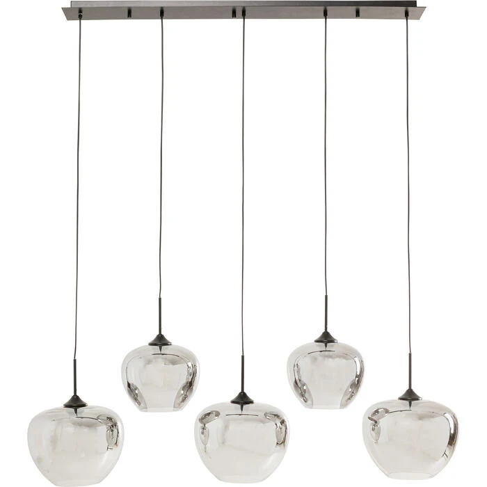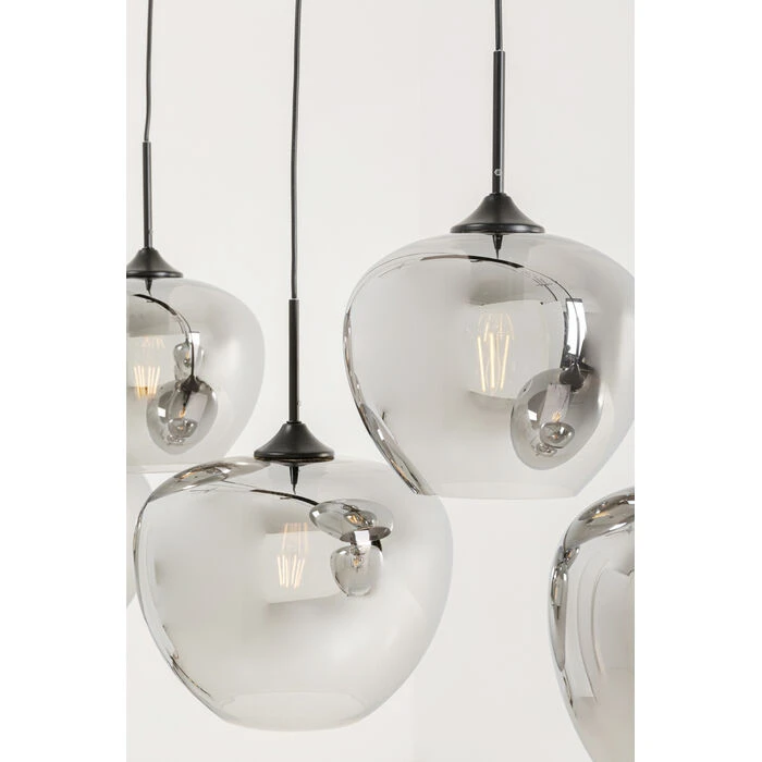 - pięć kloszy o różnych rozmiarach tworzy dynamiczną, efektowną kompozycję