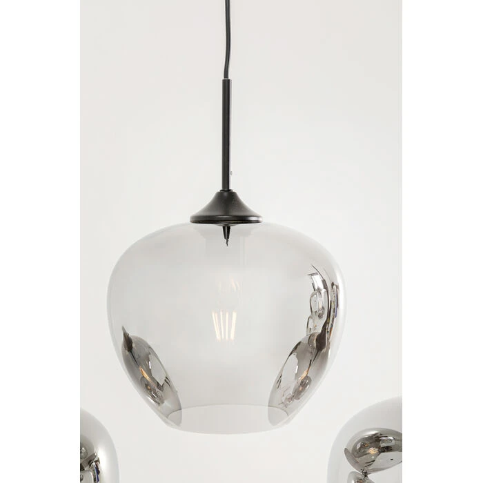 Nowoczesna i ponadczasowa – taka właśnie jest lampa wisząca Sphere. Jej wyjątkowe połączenie szkła i metalu sprawia, że staje się ozdobą każdego wnętrza, niezależnie od stylu aranżacji. Pięć kloszy o różnej wielkości przyciąga uwagę dynamiczną formą i efektowną grą światła, tworząc przy tym przytulną, nastrojową atmosferę. Wariant w bursztynowym odcieniu ociepla przestrzeń, natomiast dymione szkło nadaje jej elegancji i subtelnej tajemniczości. Stalowe detale wprowadzają lśniące akcenty i dopełniają całość luksusowym wyrazem. Lampa Sphere doskonale odnajdzie się zarówno w roli głównego oświetlenia, jak i dekoracyjnego elementu podkreślającego charakter pomieszczenia.