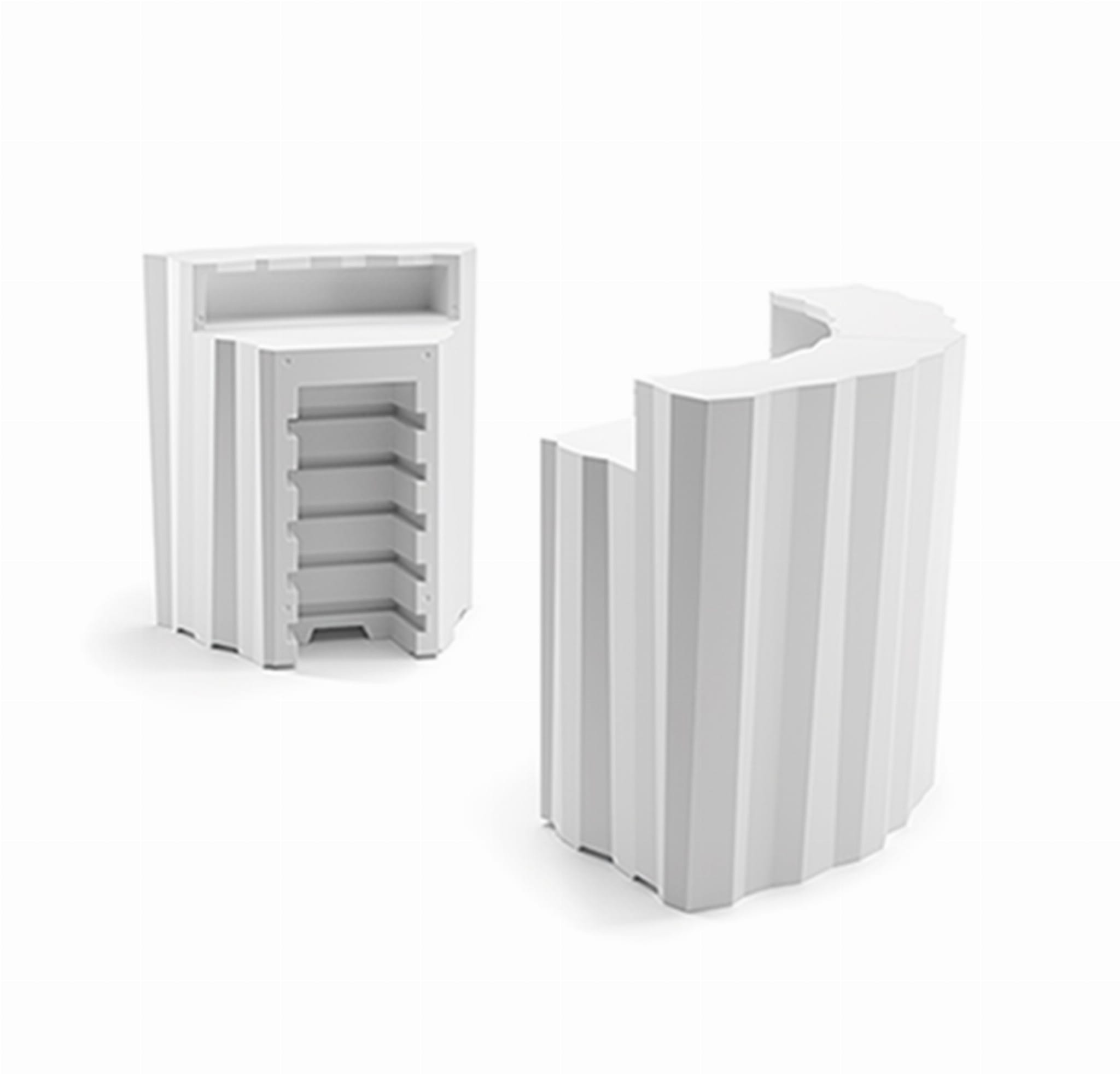 Ten narożny moduł lady Frozen został zaprojektowany z myślą o maksymalnej elastyczności. Używany pojedynczo może pełnić funkcję małego stanowiska recepcyjnego lub konsoli. Po połączeniu z elementami liniowymi, działa jako praktyczny łącznik, umożliwiający tworzenie bardziej złożonych konfiguracji – barów, punktów obsługi lub wysp eventowych. Przygotowany na 5 półek, z funkcjonalnym blatem i dwiema wnękami operacyjnymi, oferuje dużo miejsca do przechowywania i pracy. Dzięki odporności na wstrząsy i niewielkiej wadze świetnie sprawdza się w środowiskach mobilnych. Dostępny również w wersji z podświetleniem – dla jeszcze większego efektu wizualnego.