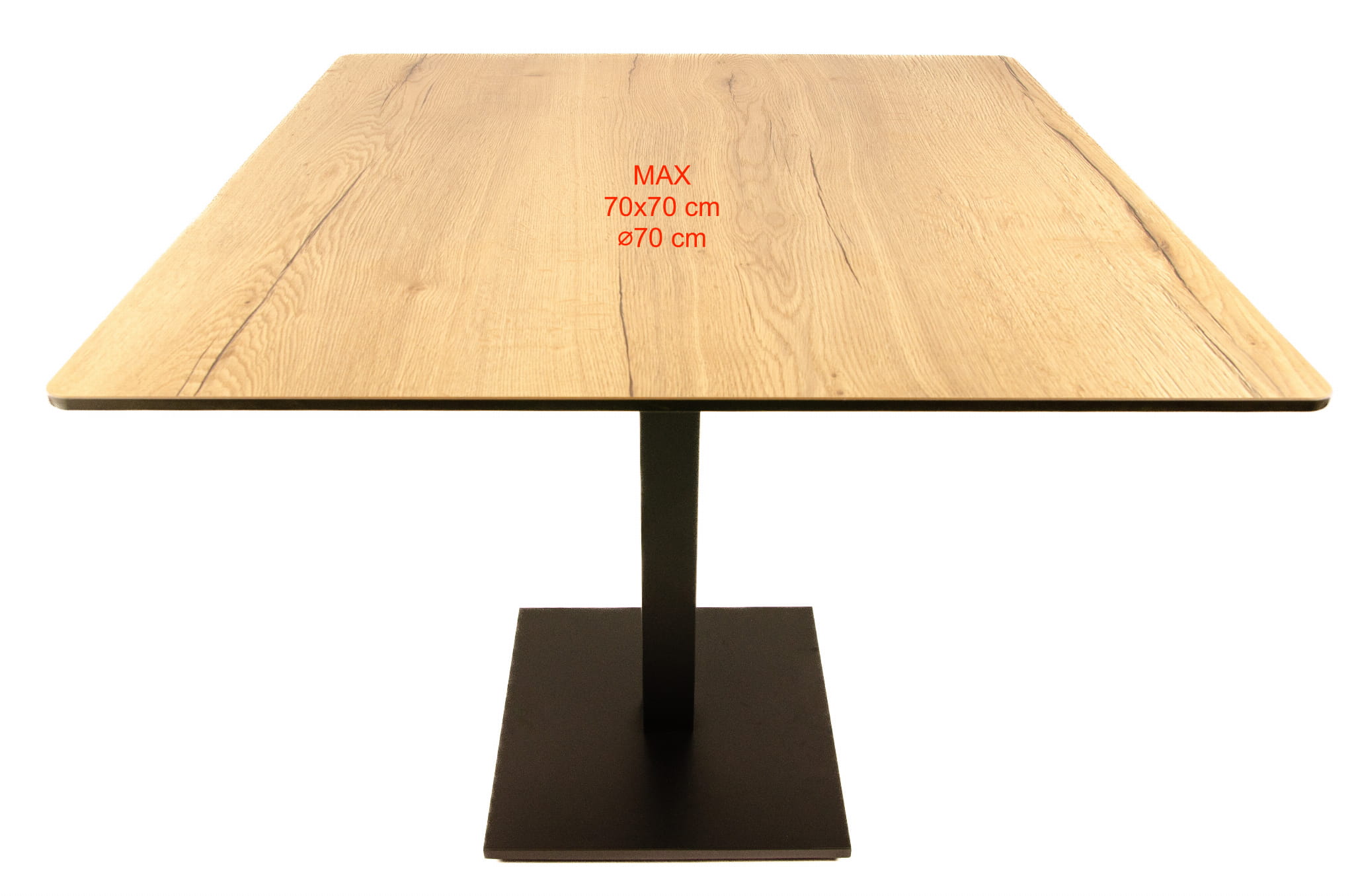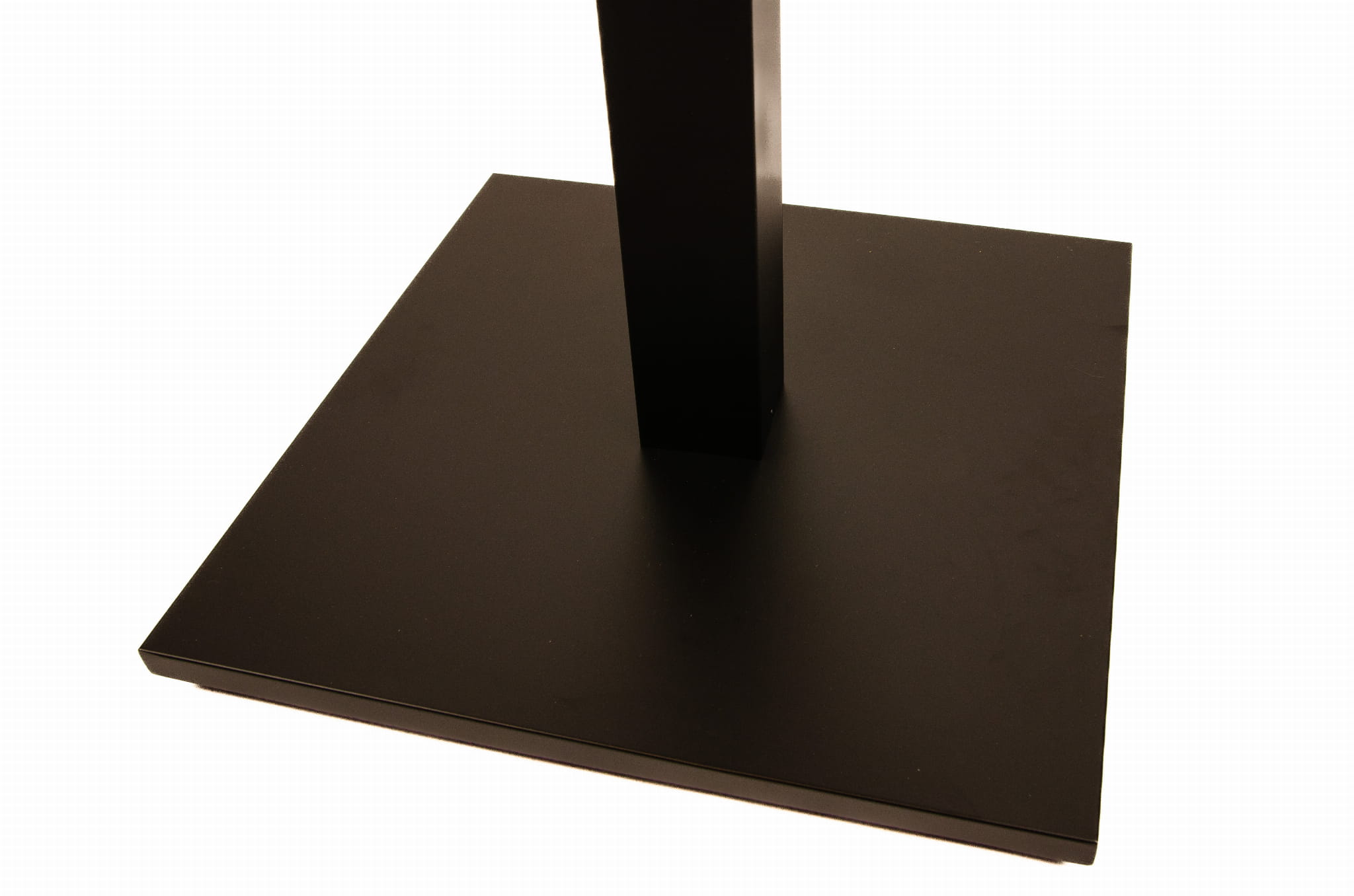 Square to klasyczna podstawa do blatów (maksymalny wymiar blatu 70x70 cm lub średnica 70 cm) posiadająca stopę w formie kwadratu. Podstawa Square odznacza się dużą nośnością (do 500 kg) oraz jakością wykonania. Podstawa pomalowana została proszkowo na uniwersalny, czarny kolor. Produkt posiada regulowane stopki, które pozwolą dopasować stół do nierównego podłoża.