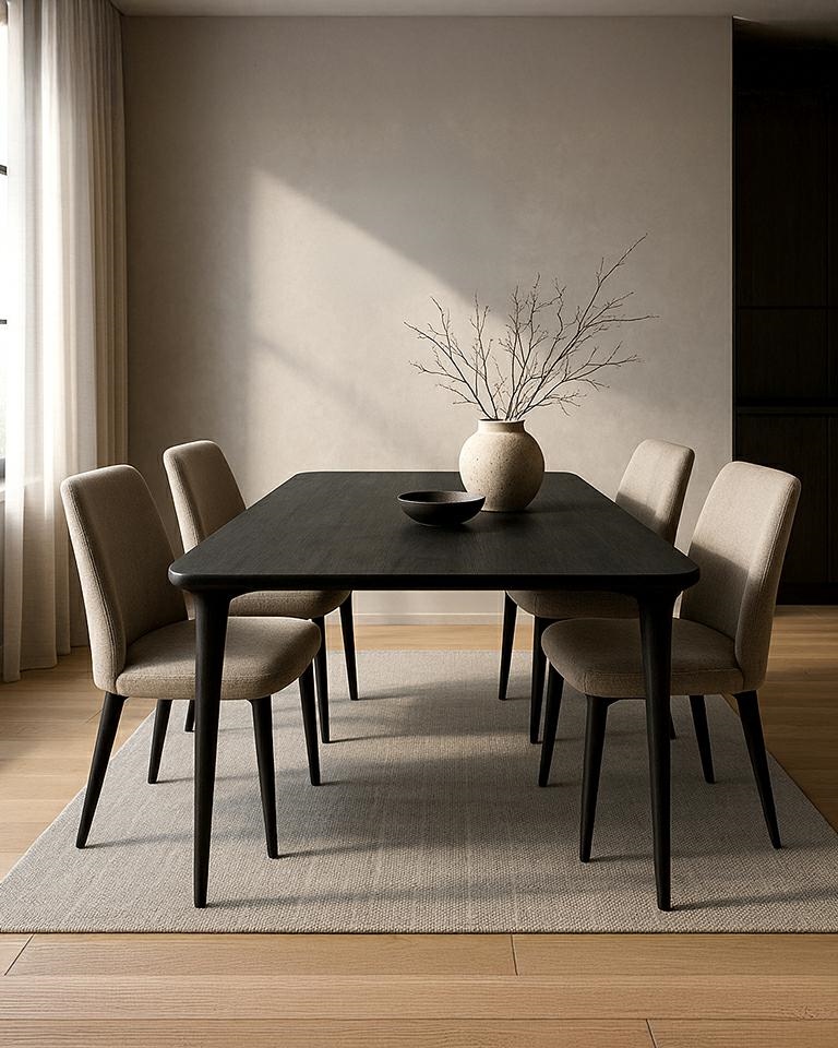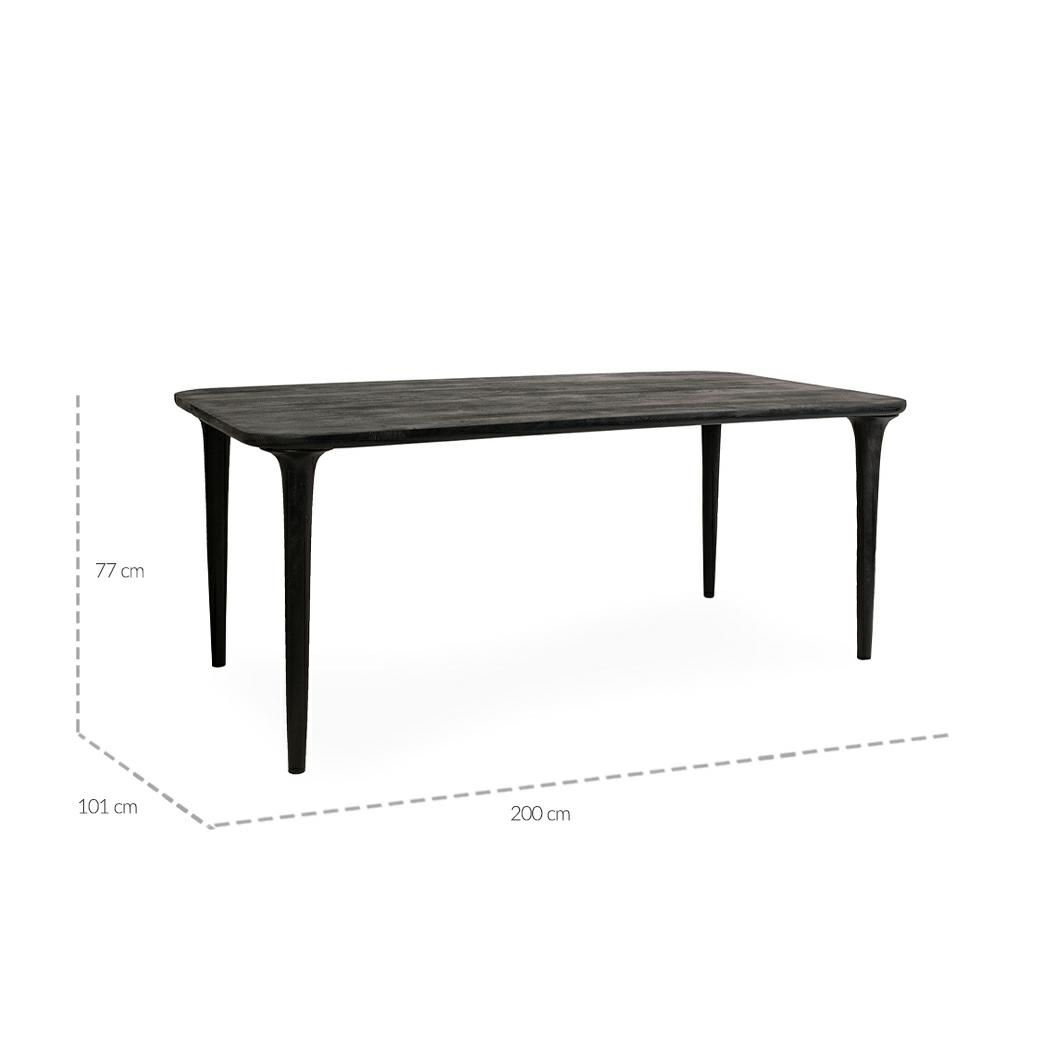 Stół jadalniany Laminar 200 to propozycja dla osób ceniących wyrafinowany minimalizm i nowoczesną estetykę. W całości wykonany z litego drewna mango i wykończony elegancką czernią, zachwyca subtelną asymetrią i delikatnie zaokrąglonymi liniami.