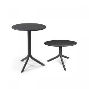 Stół Step stanowi połączenie prostoty i nowoczesności. Klasyczny design pozwala na wkomponowanie go w różnorakie przestrzenie takie jak ogród, balkon ale równie dobrze sprawdzi się w restauracji czy hotelu. Stół wykonany został z polipropylenu i włókna szklanego z dodatkami UV, dzięki czemu jest niezwykle stabilny i odporny na warunki atmosferyczne. Step daje nam możliwość ustawienia go na dwóch wysokościach, przez co jest niezwykle komfortowy.