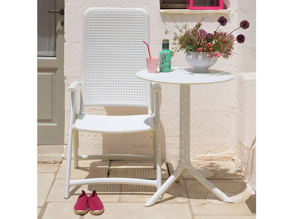 Stół Step stanowi połączenie prostoty i nowoczesności. Klasyczny design pozwala na wkomponowanie go w różnorakie przestrzenie takie jak ogród, balkon ale równie dobrze sprawdzi się w restauracji czy hotelu. Stół wykonany został z polipropylenu i włókna szklanego z dodatkami UV, dzięki czemu jest niezwykle stabilny i odporny na warunki atmosferyczne. Step daje nam możliwość ustawienia go na dwóch wysokościach, przez co jest niezwykle komfortowy.