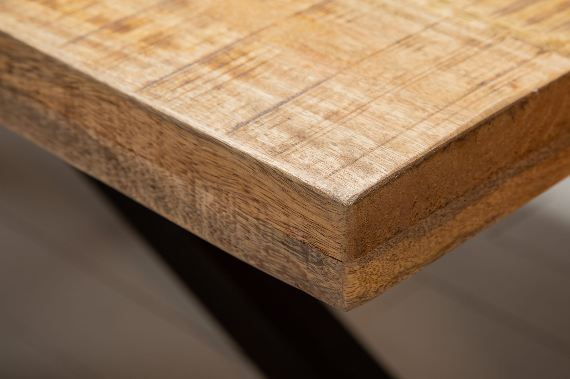Duży, drewniany blat, wykończony na kolor szary, daje niesamowity efekt, który przyciąga uwagę. Naturalne wyżłobienia i nierówności dodają Karexie uroku, a metalowa, elegancka podstawa kolorze czarnym jest nie tylko urodziwym zwieńczeniem całości, lecz także sprawi, że stół będzie stabilny i wytrzymały. Stół Karexie z powodzeniem pomieści wszystkich Twoich bliskich i będzie ozdobą Twojej jadalni, kuchni czy salonu.