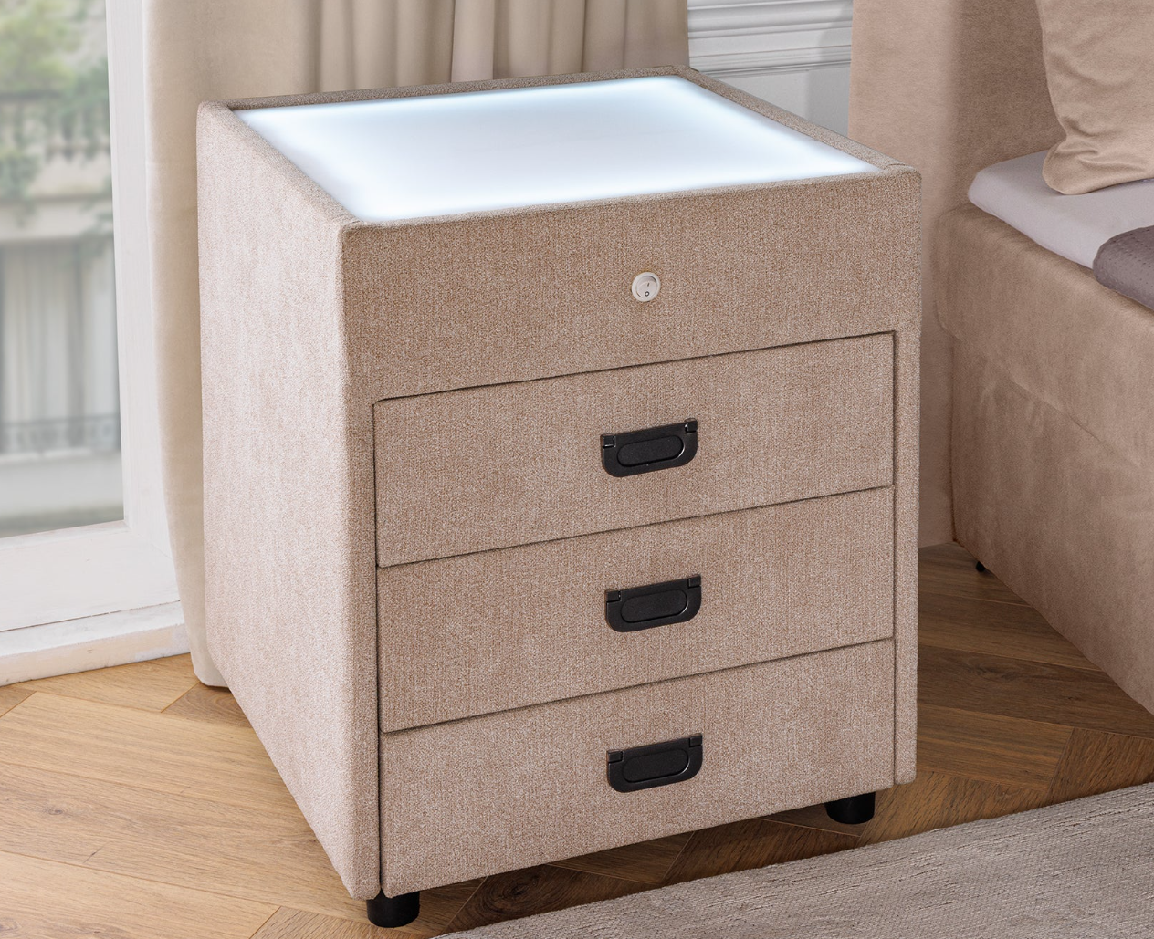 Szafka nocna Toulouse marki Invicta łączy w sobie stylowy wygląd i praktyczne rozwiązania. Pokryta miękkim, eleganckim aksamitem, stanowi efektowny dodatek do nowoczesnej sypialni. Wbudowane oświetlenie LED z możliwością zmiany koloru światła pozwala tworzyć różne nastroje – od subtelnego relaksu po romantyczny klimat. Szafka Toulouse doskonale wpisuje się w nowoczesne i minimalistyczne wnętrza, dodając im ciepła, komfortu i niepowtarzalnego uroku.